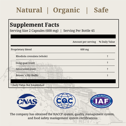 Energy Boost - Rhodiola and Angelica Sinensis, Boost Daily Energy, Reduce Fatigue, Enhance Blood and Heart Health, Metabolism, Support Lung Function, Tibetan Natual Herbs, 120 Veggie Capsules